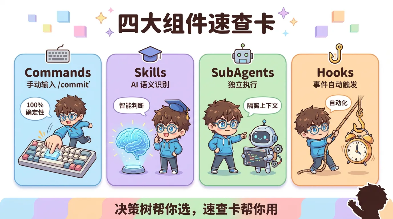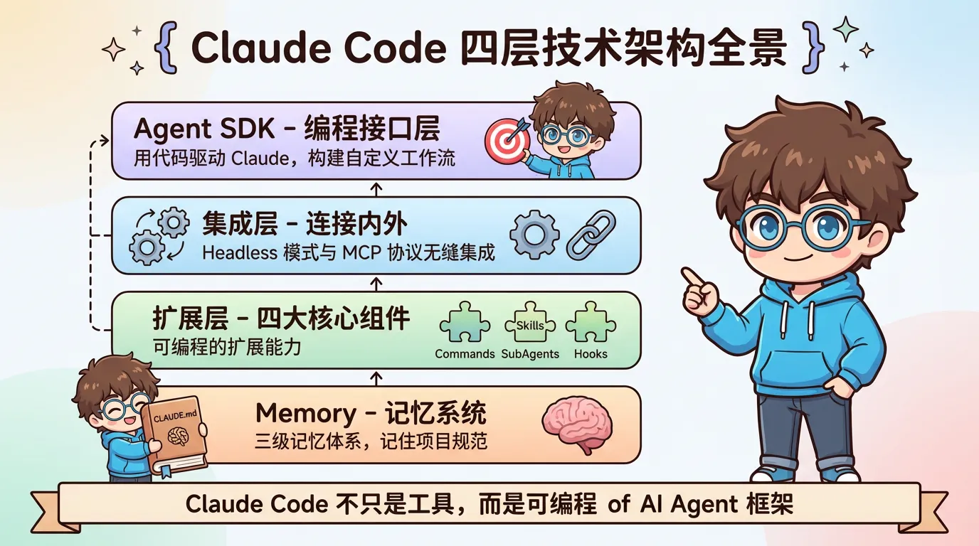 | 第2层 | 扩展层 | Commands、Skills、SubAgents、Hooks四大核心组件 |