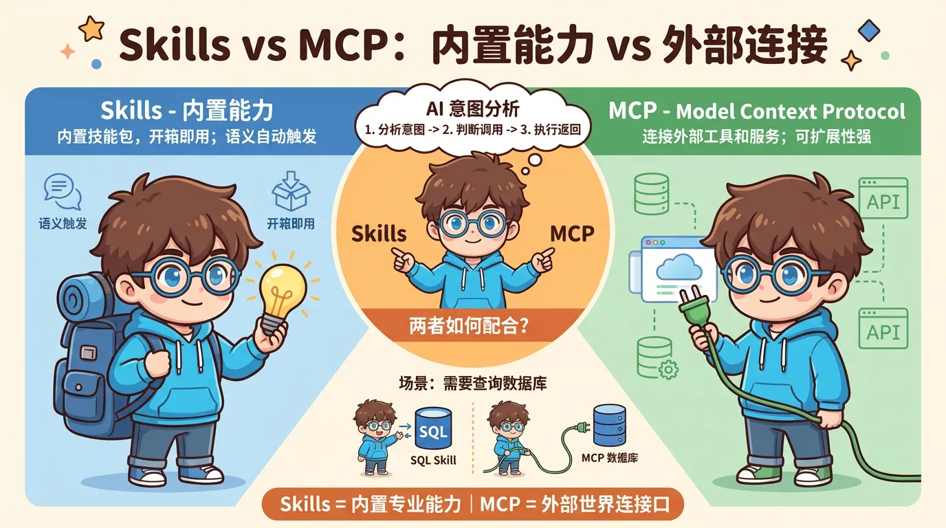 | 解决窗口限制 | 复杂能力打包成Skill,需要时才加载 |