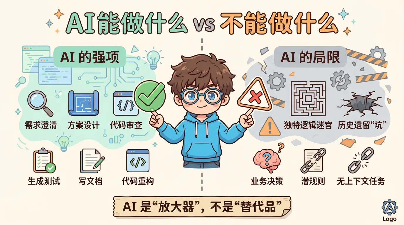 AI不是魔法。它更像一个”超级助手”,但不是”超级替代者”。