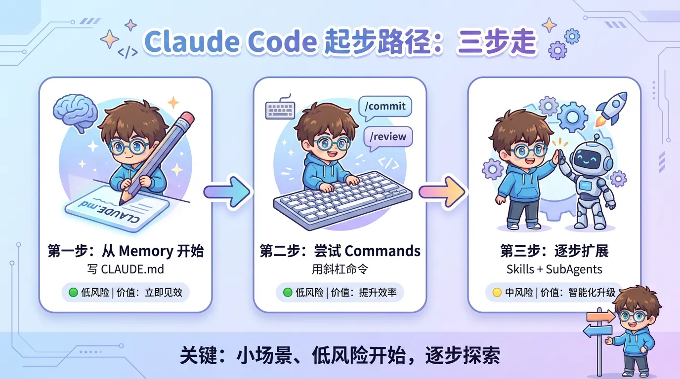 Memory、SubAgents、Skills、MCP、SDD——这些组件和方法构成了 Claude Code 的完整体系。但真正让它们生效的,是你对问题的判断和对结果的验收。工具已经就绪,剩下的就是选一个小场景,开始用。