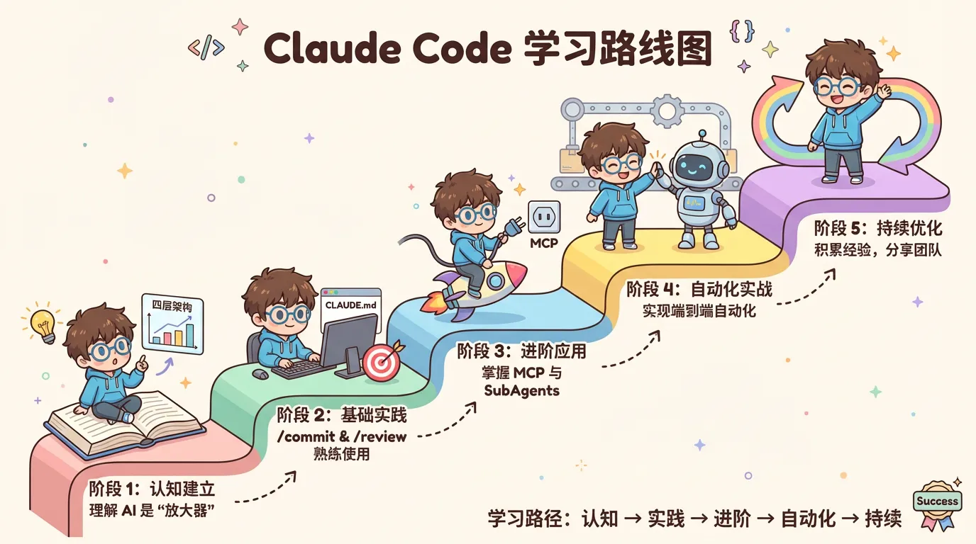 学习路径:认知 → 实践 → 进阶 → 自动化 → 持续